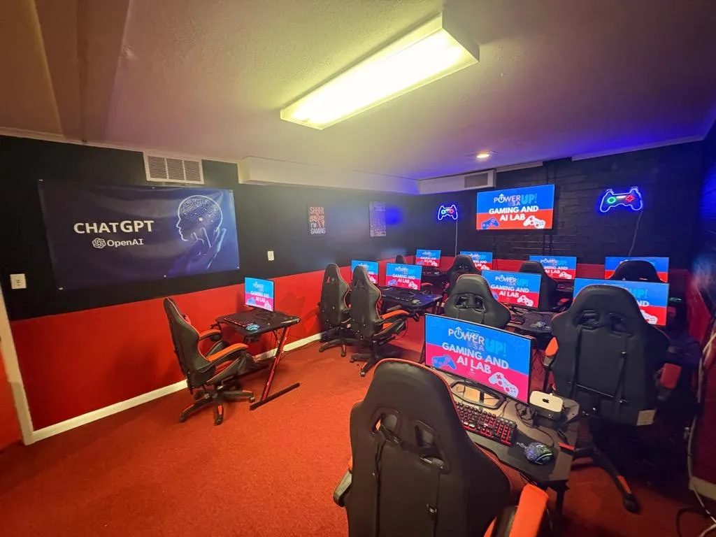 10-station AI and gaming lab. Users can explore artificial intelligence tools and game development.
